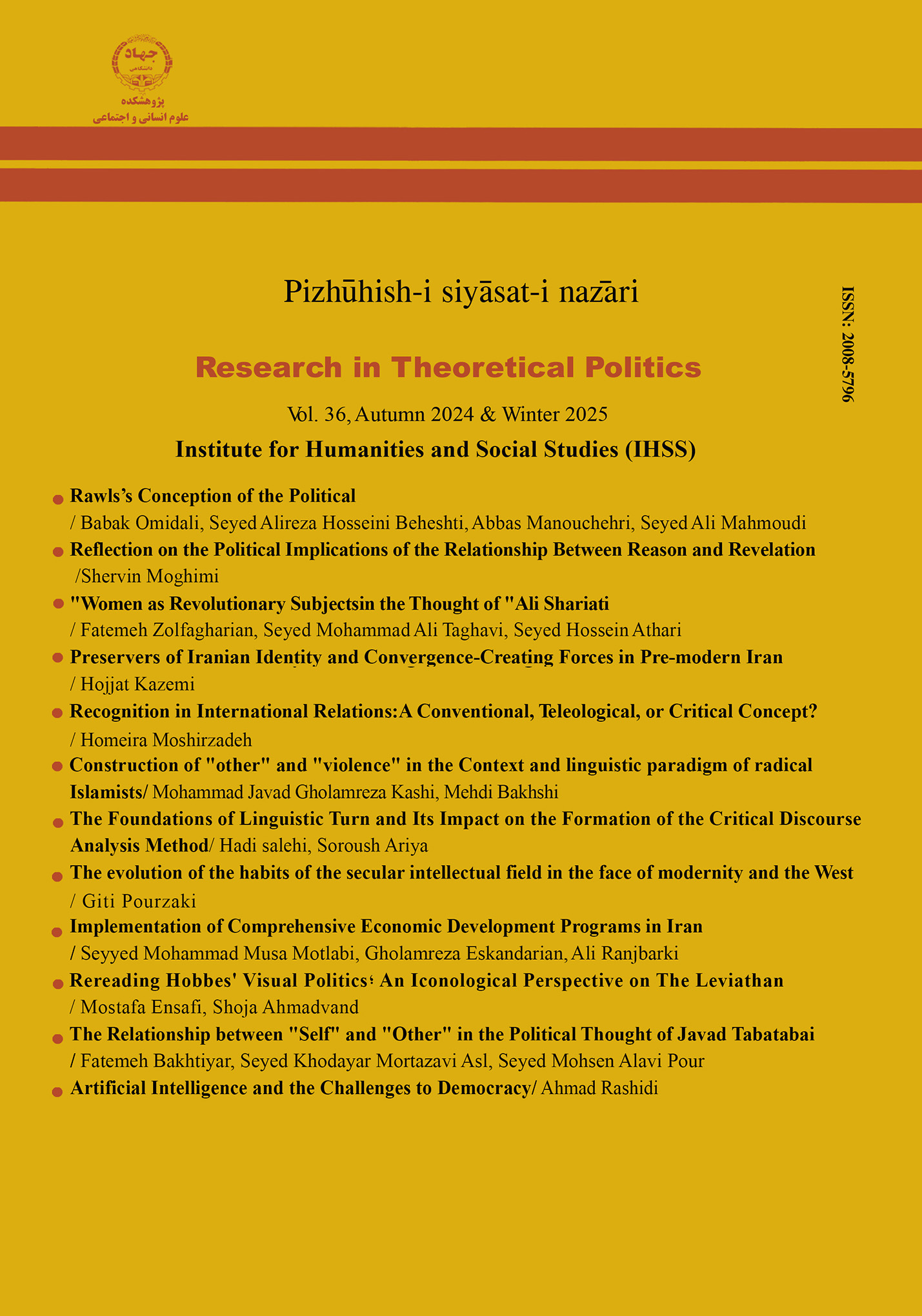 List of Articles رابطه «خود» و «دیگری». Open Access Article Abstract Page Full-Text 1 - Rawls’s Conception of the Political Babak Omidali seyed alireza Hoseyni Beheshti abbas manochehri Seyed Ali Mahmoudi 20.1001.1.20085796.1403.19.36.1.5